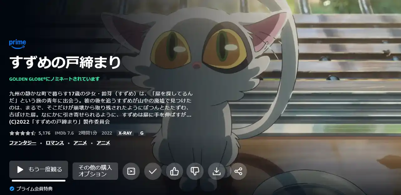 看《间谍×过家家·代号:白》的时候亚马逊还顺带给我推荐了《铃芽之旅》,这才想起来我《铃芽之旅》也还没看呀!于是又抽空在亚马逊上把《铃芽之旅》给看完了。