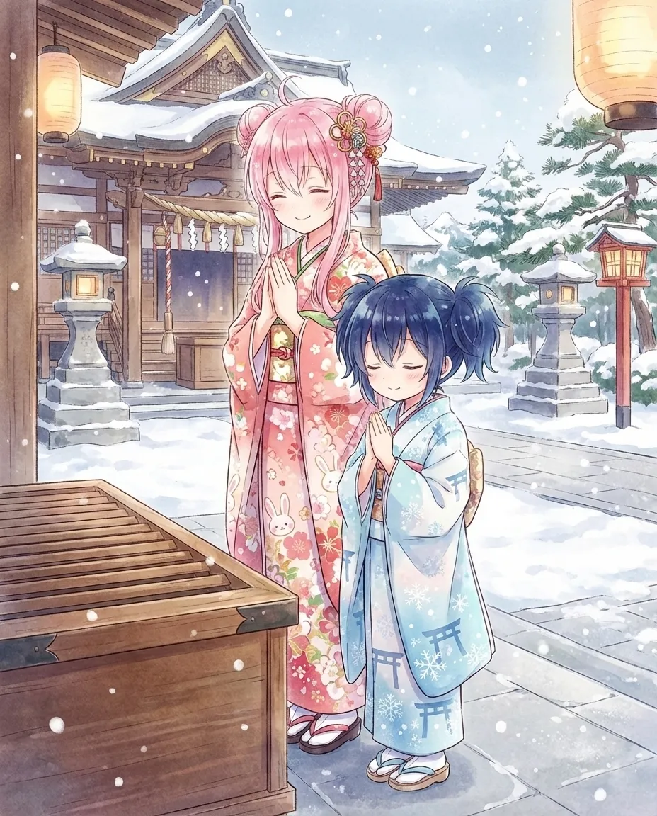 使用AI绘制的砂糖与盐的过年图。 被治愈到了。